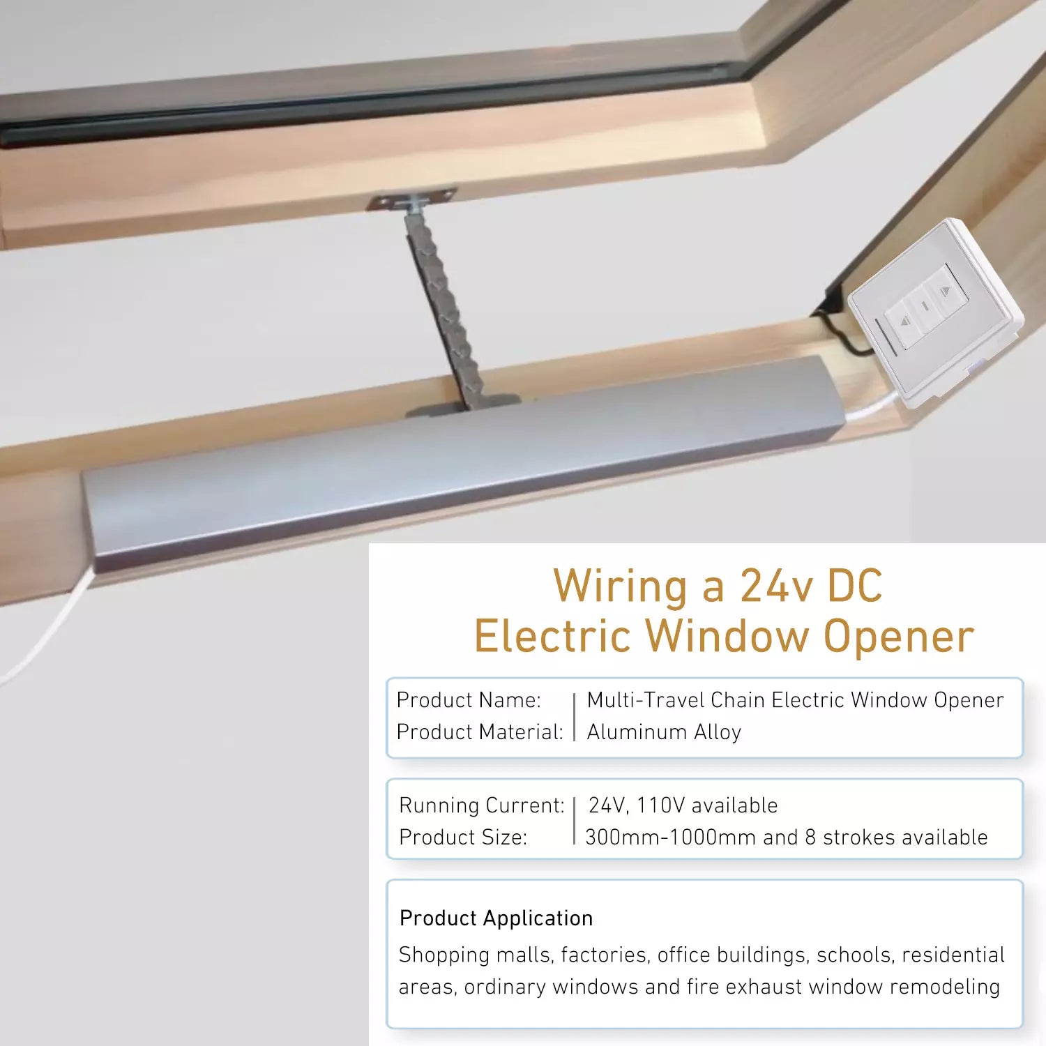 Smart Automatic Motorized Window Skylight Opener, Chain Electric Window Actuator Motor, Stroke 300mm for Clerestory, Casement Window, Roof Vent (DC24V Input)